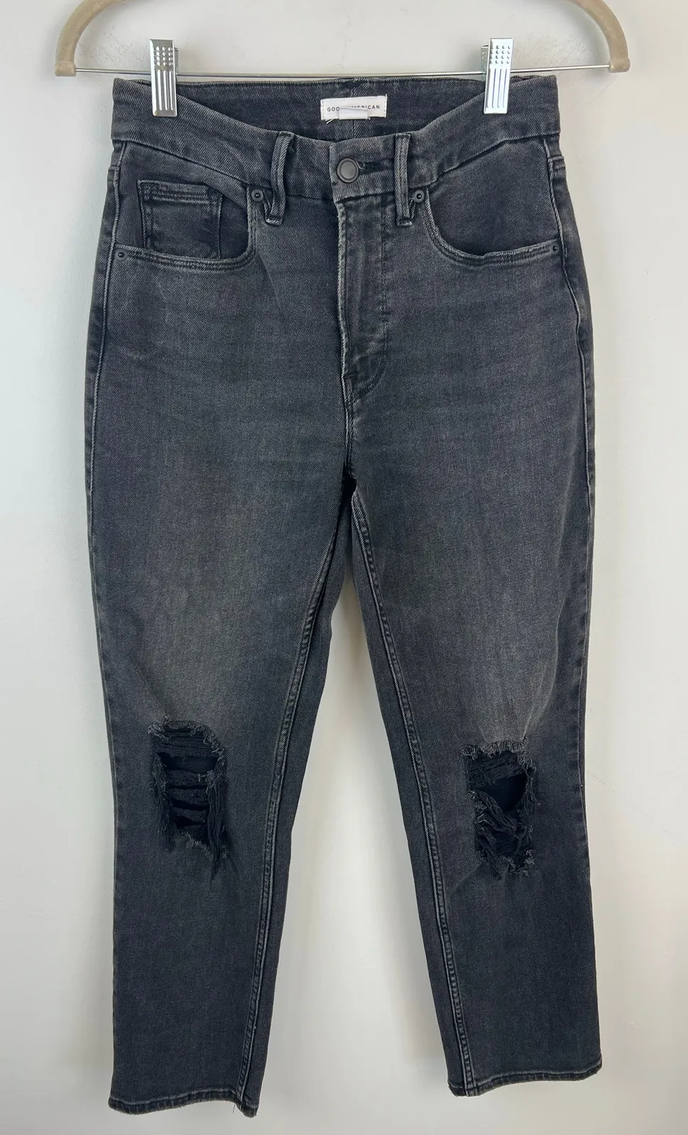 Women's Good American jeans, size 0/25 Total length: 37” Waist lying flat: 12.5” Inseam: 26” Rise: 9... Show more