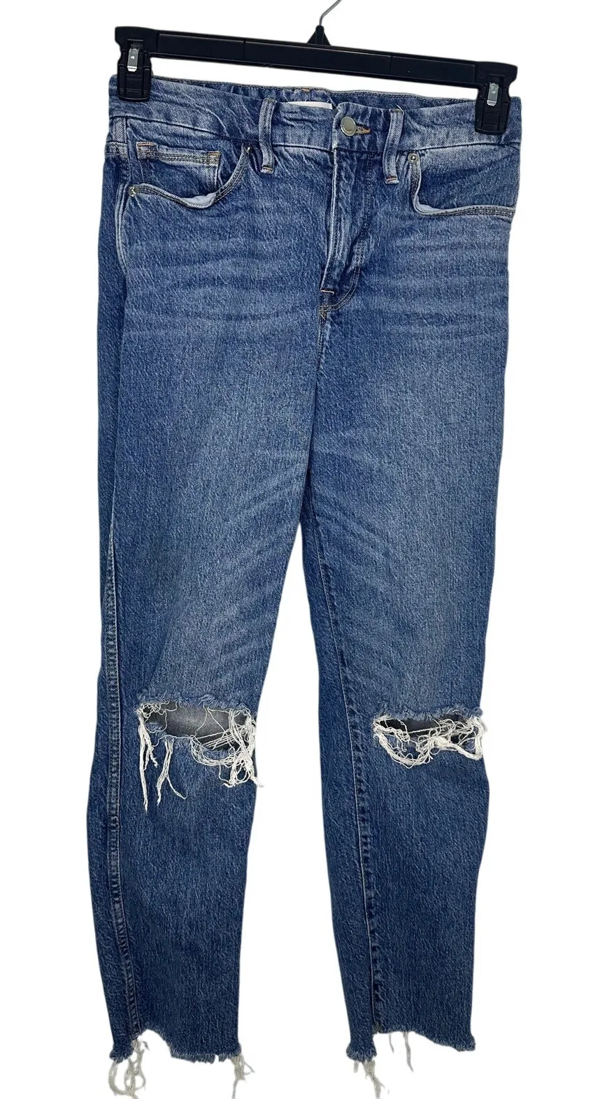 Good American Raw Hem Distressed Jeans Medium Wash Size 6 26 Straight Leg Blue - $31 - From CatherIne