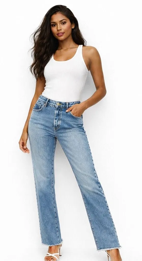 • good american jeans, good curve straight jeans, raw hem jeans, straight leg denim, stretch denim jeans, mid rise jeans, blue straight jeans, designer denim, influencer denim, model off duty jeans, clean girl denim, capsule wardrobe jeans, everyday denim, premium jeans, sculpting jeans, curve fit jeans, good american raw hem, celebrity denim brand, modern straight jeans, womens premium denim