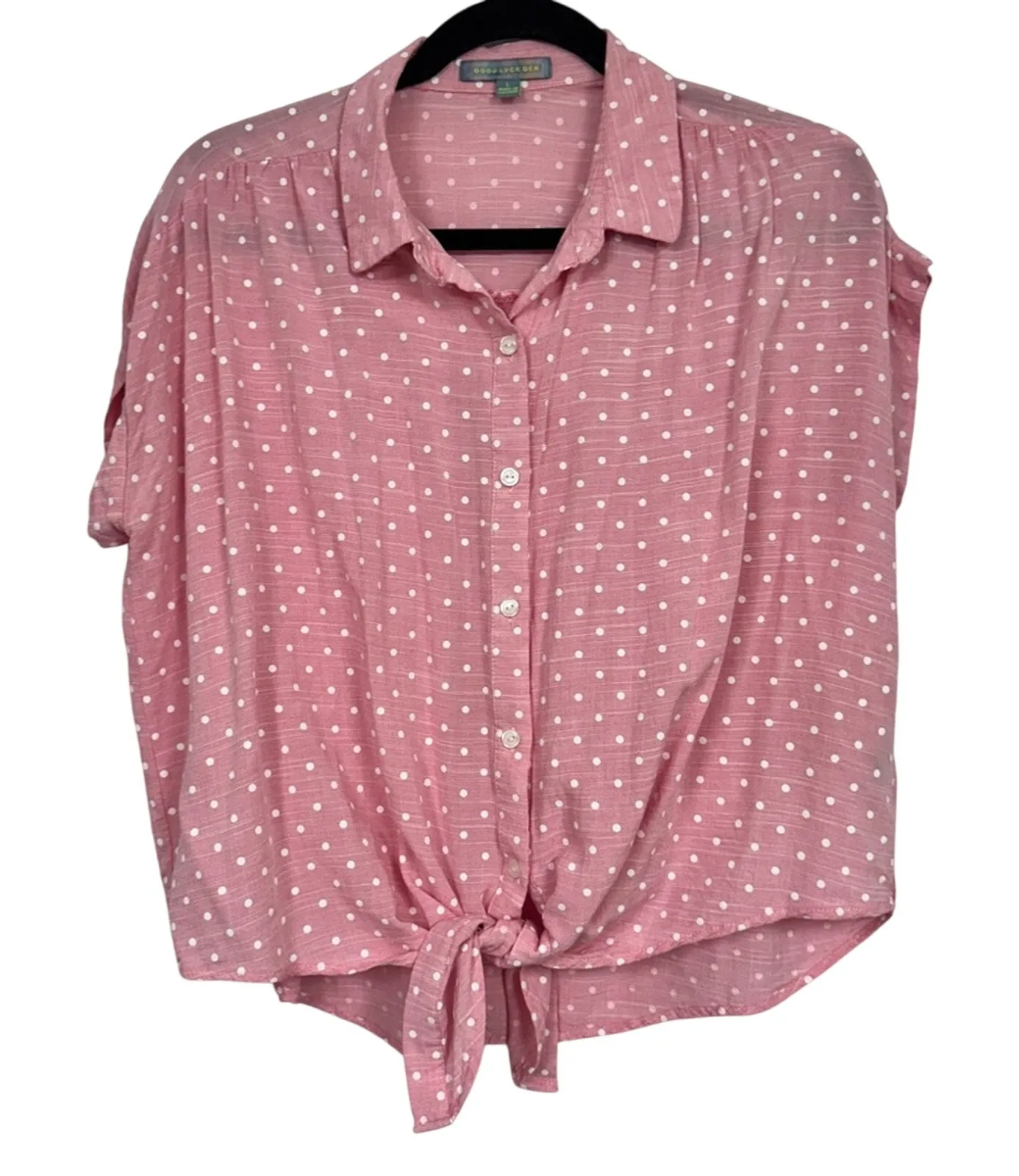 Good Luck Gem Pink Polka Dot Button Down Shirt Womens L Short Sleeve Casual Top Size L - $20 - From Lisa