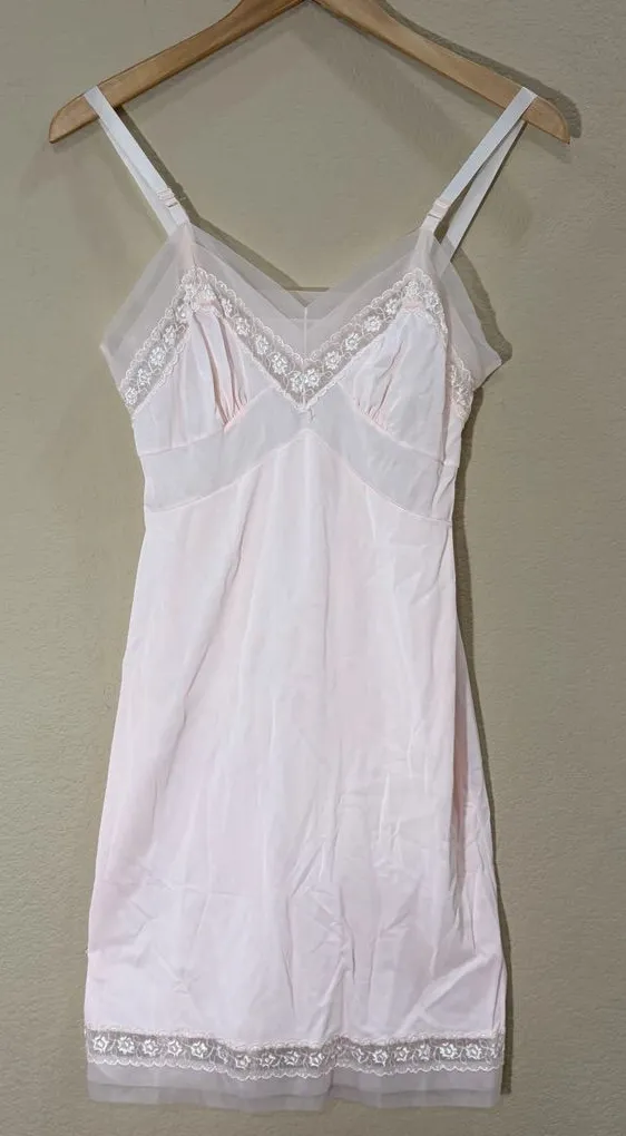 Questions? Leave a comment below!EuC This vintage pale pink embroidered slip from the 1970s by deen... Show more
