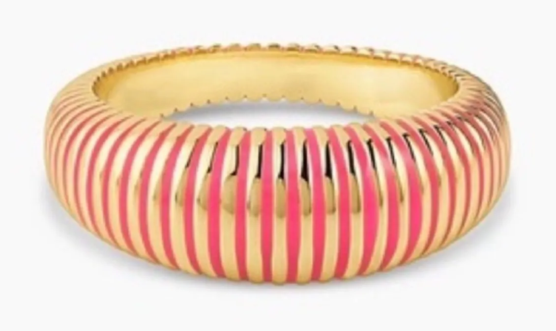 18k Gold Plated Catalina Enamel Ring Gold Pink Striped Boho Minimalist Size 7 - $23 (64% Off Retail) New With Tags - From Ellie
