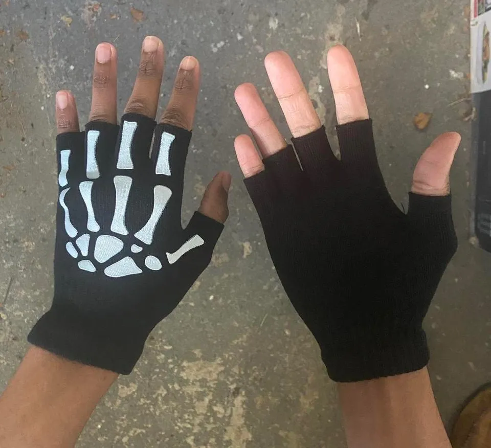Gothic Black and white fingerless punk gloves with Skeleton arm Y2k Skater Size undefined - $11 - From Marie Josee