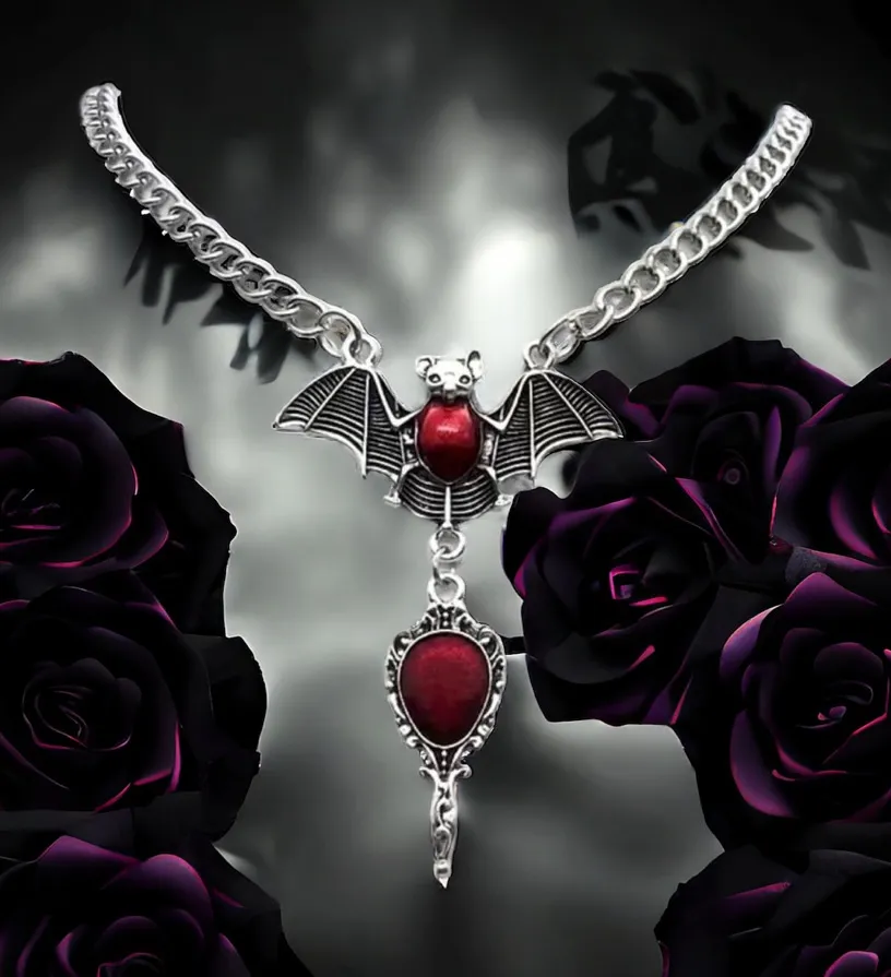Gothic Party Style Special Bat Red Mirror Pendant‎ Zinc Alloy Necklace Silver - $17 New With Tags - From Mon