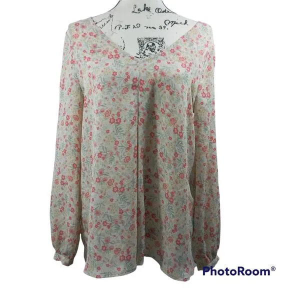Lauren Conrad Floral Tassel Tunic Peasant Blouse Size M Floral Botanical Deep V-Neck Chiffon Constr... Show more