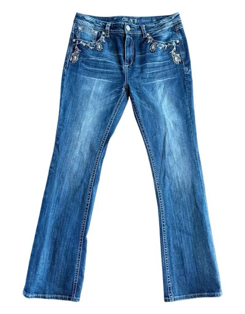 Grace In LA Easy‎ Fit Bootcut Cowgirl Embroidered Jeans size 32 Blue - $42 - From kalena