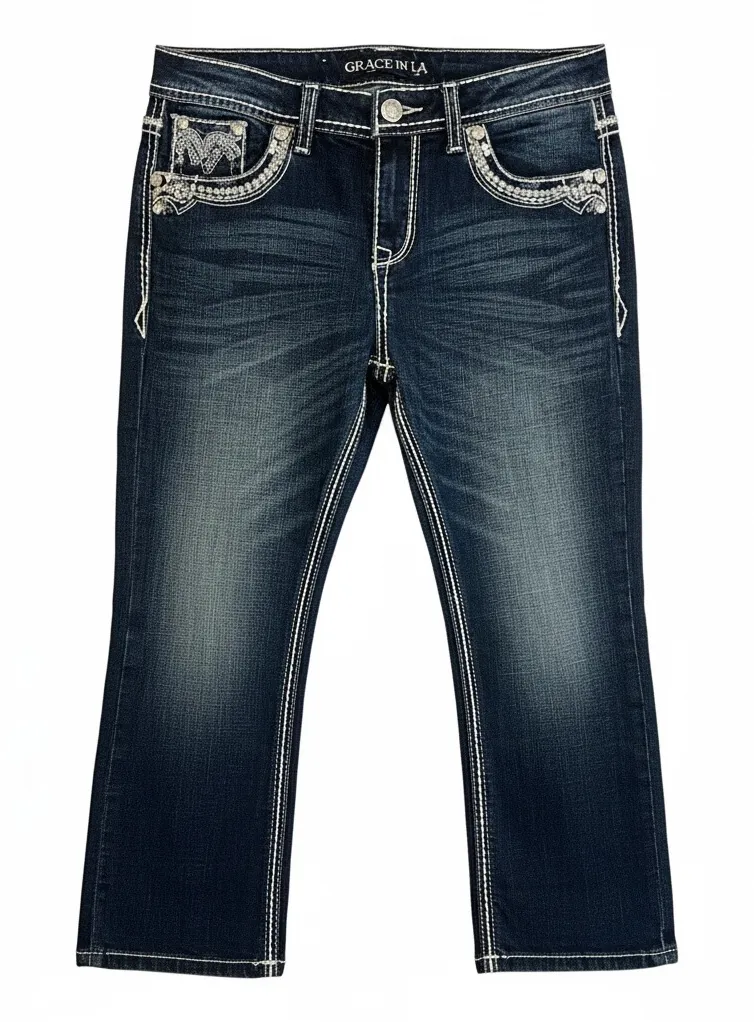 Grace in LA Women Capri Jean NWT Dark Wash Sz 28 Easy Fit Stretch Denim Western Blue - $23 New With Tags - From Denise