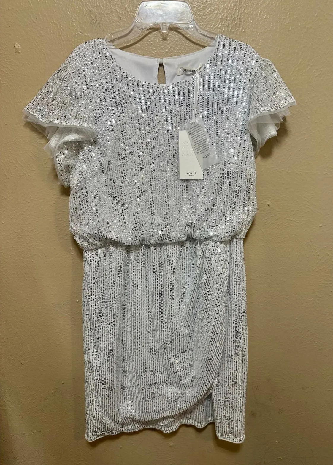 Style: Bodycon, Shift Dress Length: Short Department: Women Sleeve Length: Short Sleeve Pattern: Solid Occasion: Party/Cocktail Material: Polyester, Elastane, Viscose Fabric Type: Knit Neckline: Round Neck Season: Spring, Summer, Fall, Winter Sleeve Type: Flutter Sleeve Closure: Pullover Accents: Sequin, Layered Keywords: sequin dress, party dress, silver dress, cocktail dress, evening dress, glitter dress, special occasion, holiday dress, dance dress, glamorous, sparkly, tulle sleeves