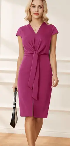 GRACE KARIN Midi Cap Sleeve Tie Waist Work Dress Slit V-Neck Business Casual S Pink - $30 New With Tags - From Midmom