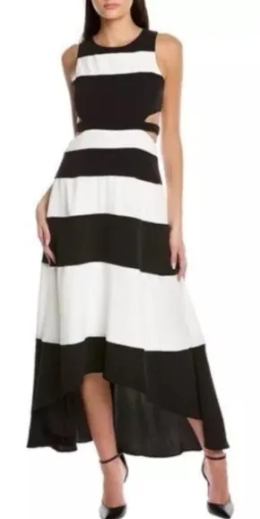 Brand: Gracia Size: Small Condition: Excellent pre-owned condition Elegant and striking, this Gracia formal maxi dress features bold black and white horizontal stripes with a modern cutout waist detail that creates a flattering, cinched silhouette. Designed with a sleeveless bodice and a structured yet fluid skirt, this dress balances graphic contrast with timeless sophistication. The peekaboo waist cutouts add subtle edge while remaining event-appropriate, making it perfect for weddings, cocktail parties, galas, or evening events. The long maxi length and tiered stripe placement elongate the figure, while the tailored upper bodice provides a polished, upscale look. A standout piece that transitions effortlessly from formal occasions to elevated dinner events. Measurements are approximate and from laying flat: Chest: 15โ Waist: 13โ Length: 54โ modern, formal, graphic, minimalist, chic, evening, statement, elegant, contemporary, black white dress, striped maxi dress, cutout waist dress, formal maxi, evening dress, wedding guest dress, cocktail dress, modern formal, sleeveless maxi, graphic stripe dress, occasion wear, Gracia dress