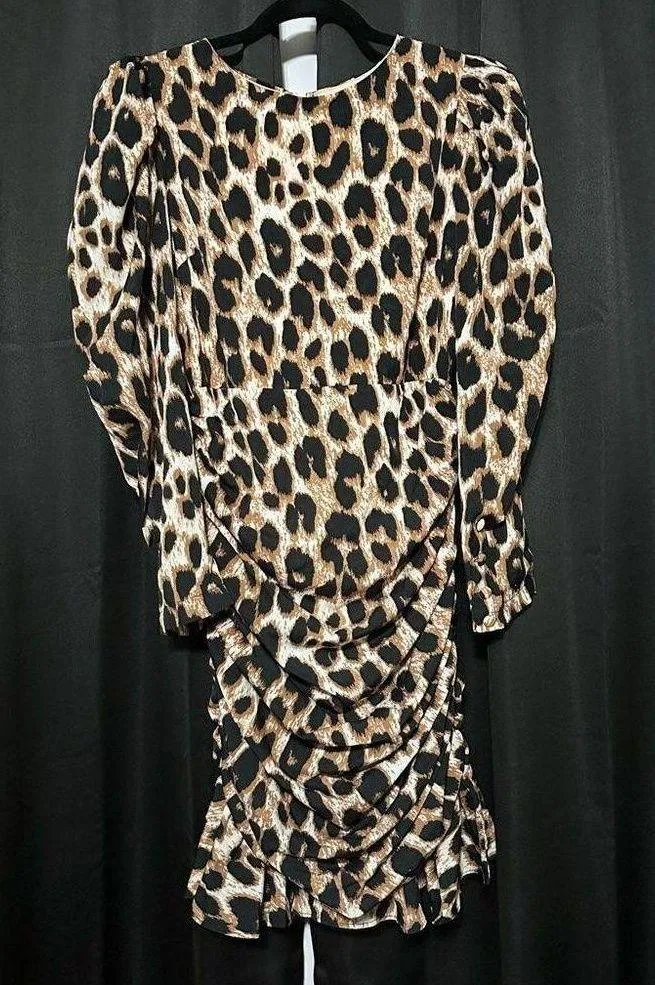 Gracia Leopard Print Dress. Gracia animal print dress, Cinched sides, Fit & Flare 100% Polyester •Tag Size: Small •NEW WITH TAGS •No Flaw LOC#1739 *Approximated Measurements are taken while laying the garment flat (one side) NOT Doubled or stretched: •Armpit to armpit:18” •Sleeve Length from shoulder:24” •Length (collar seam-bottom hem): 34" •Waist 14”