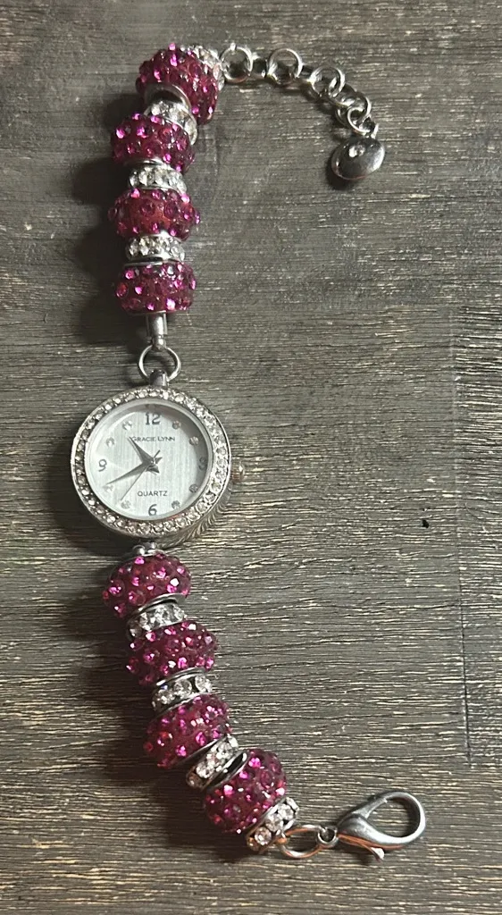 Gracie Lynn Pink Beaded Charm Bracelet Style Women's Watch - $30 - From Kayla