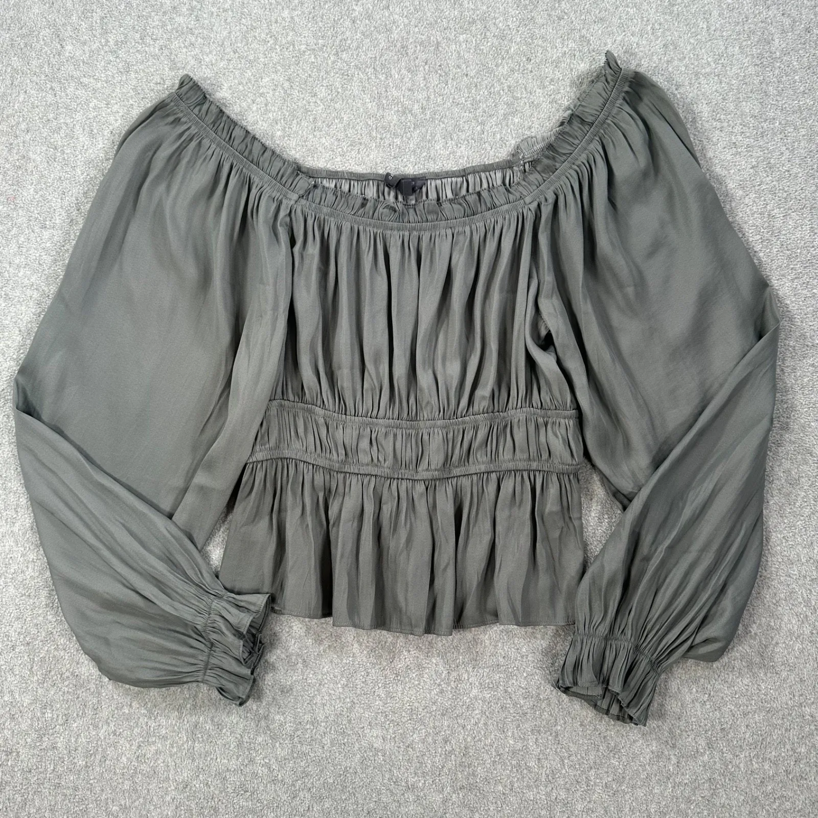 Grade & Gather Peasant Blouse Women's Small Green Long Sleeve Pleated Satin Size: Small Condition:... Show more