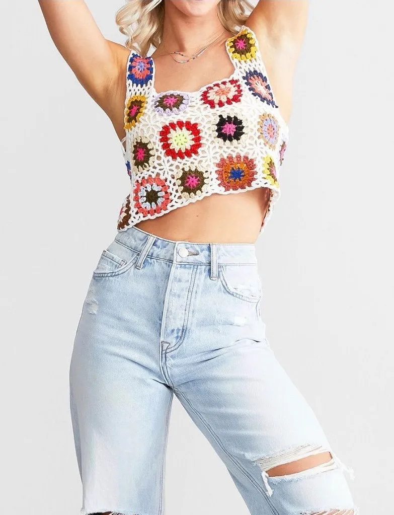 Granny Square Crochet tank top in white and multi-coloured sz M No brand tag Size M - $24 - From Robyn