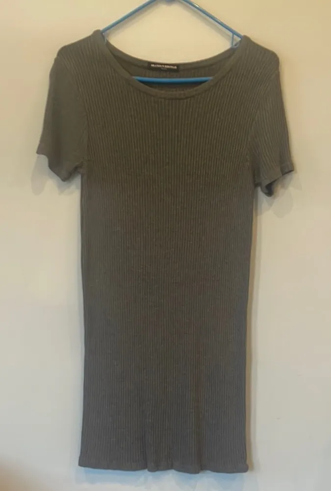Elevate your wardrobe with this stylish gray ribbed dress. Perfect for any occasion, its short sleev... Show more