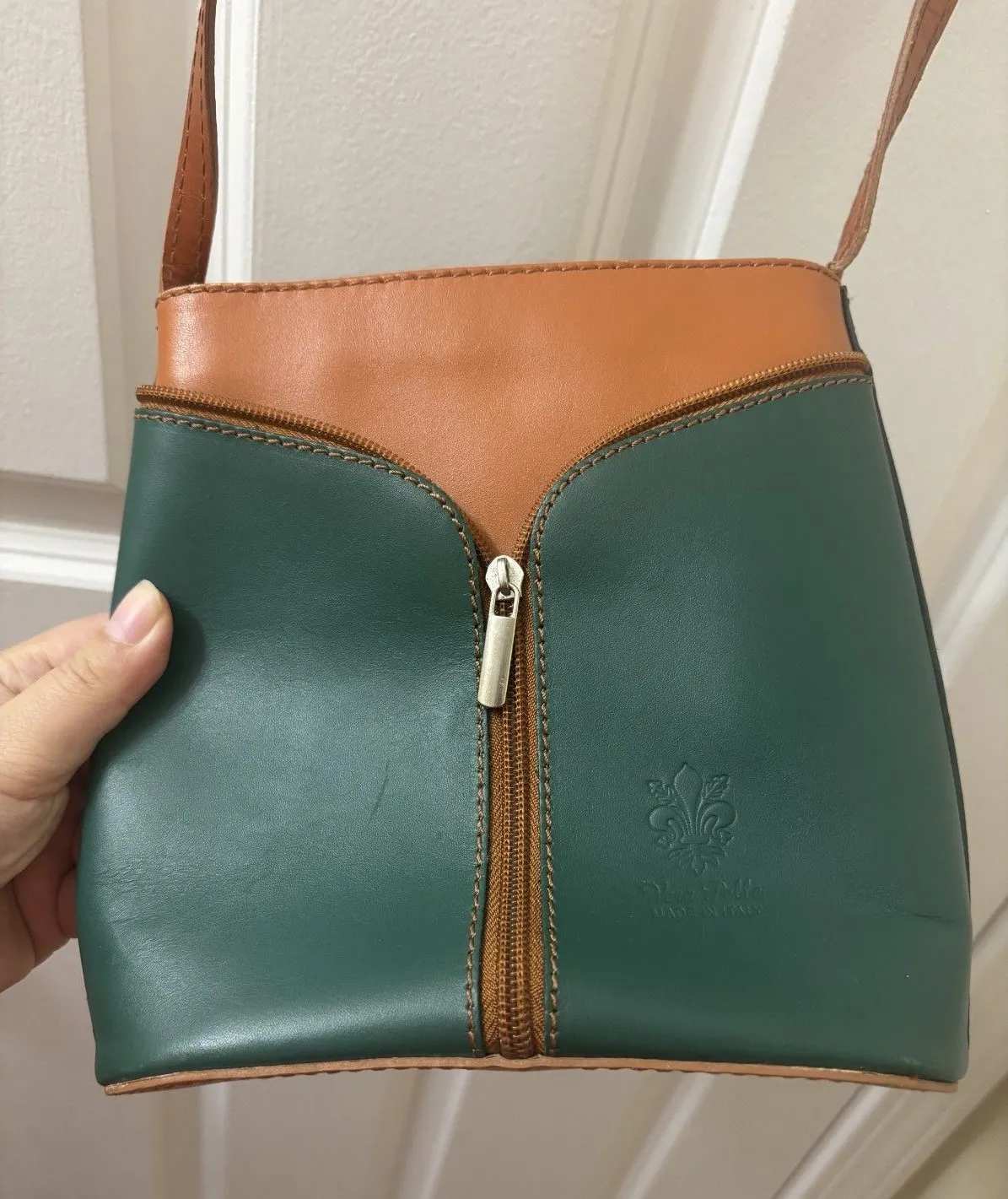Green BROWN Leather Purse Vera Pelle Italian Crossbody Handbag - $20 - From huanjuan
