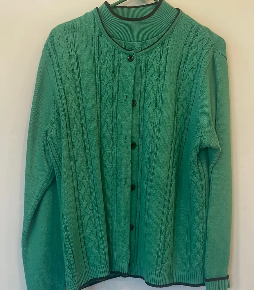 Green Cable Knit Cardigan with sleeveless sweater vintage made in USA Size M - $35 - From Lisa