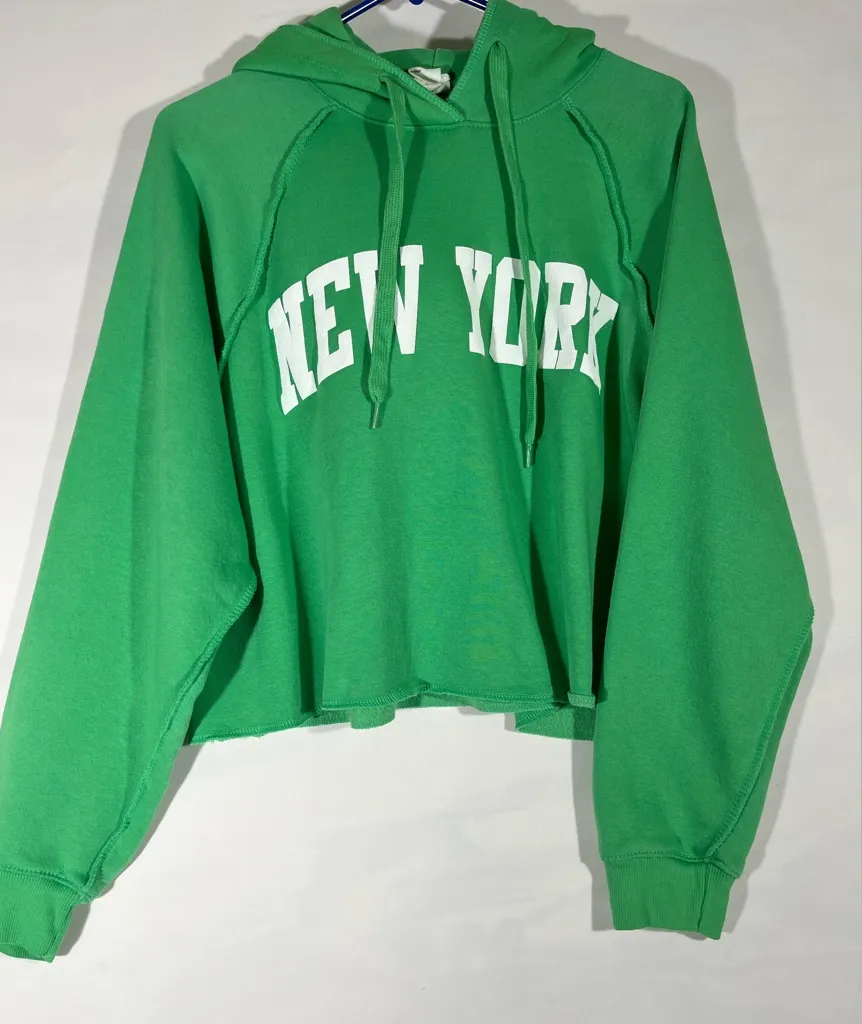 GREEN CROPPED NEW YORK HOODIE OVERSIZED WOMEN SZ‎ 8 BY RELAXX NEW - $30 - From DeDe