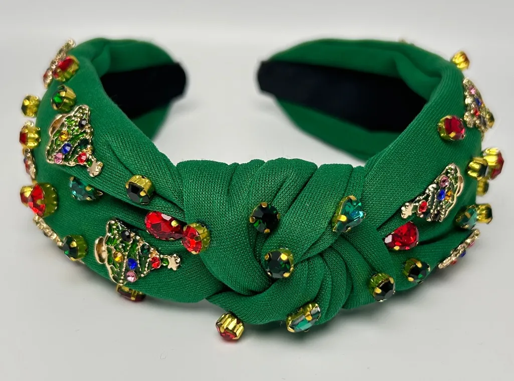 All items come from my smoke free pet free home. Please review all photos and the full description before purchasing. Questions welcome! Items ship next business day. Description Festive green embellished knot headband featuring multicolor rhinestones and gold tone Christmas tree charms. Beautiful statement accessory for holiday parties, photos, or gifting. Preowned ( worn once) but in excellent condition with no flaws. Details & Measurements • Color: Green with multicolor jeweled embellishments • Style: Knotted top, padded headband • Embellishments: Rhinestones, gold tone Christmas trees • Width at widest point: approx 1.25 in • Length ( 6 “ from middle knot to bottom level with ends) SEE PICS • One size fits most • Soft, comfortable interior band Condition Excellent preowned condition. No missing stones. Disclaimers Sizing can vary between brands and styles. Check measurements against a similar item you already love for the best fit. Color tones may vary slightly due to lighting and screen settings. holiday headband festive hair accessory beaded jeweled knot headband