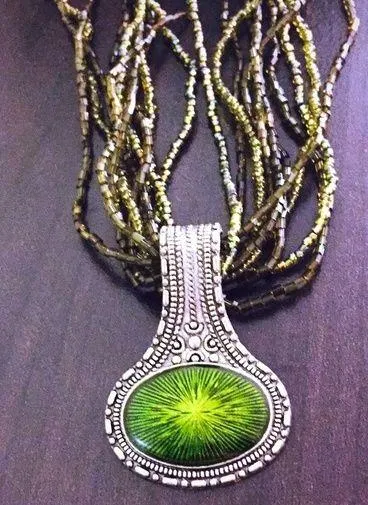 This is a very glamorous necklace & earring set! The delicate beading is an olive green color. And the beautiful pendant is silver with a dark green in the center. Absolutely Beautiful!! Brand New/ Never Worn!! If you love this item, please send me an offer!! I am Very Negotiable! ☺️