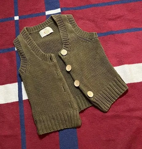 Green sweater button up vest Tagged L large - fits like S small Wooden buttons - $24 - From Kristal