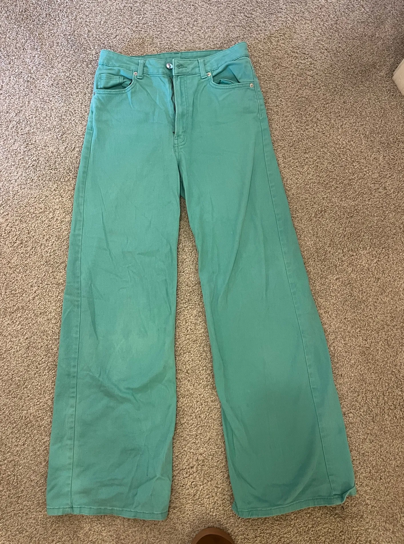Green ZARA jeans First picture shows the best color Good condition. Some fading of the green color