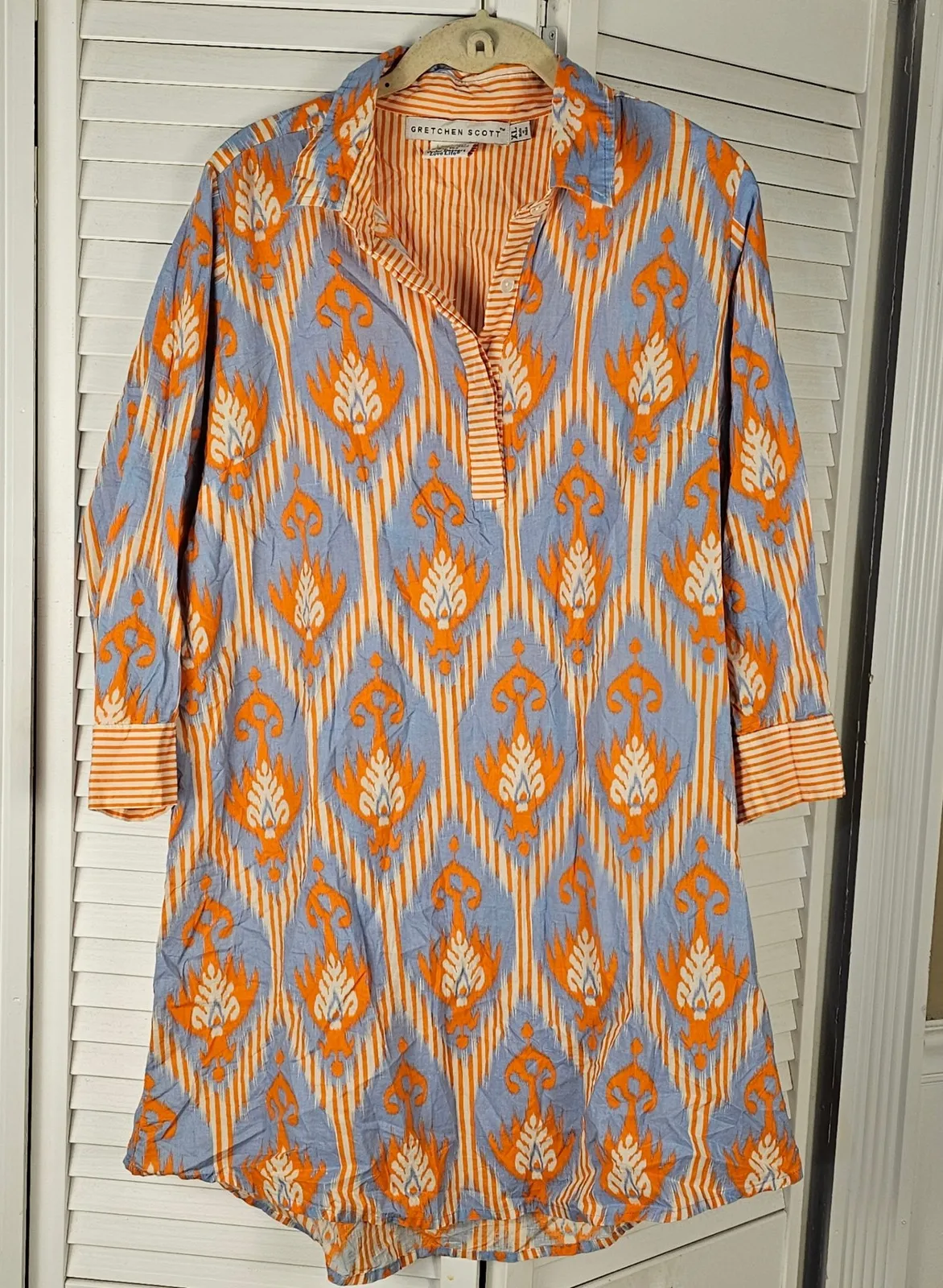 Gretchen Scott Womens Blue Orange Long‎ Sleeve Shirt Dress XL - $31 - From Pamela