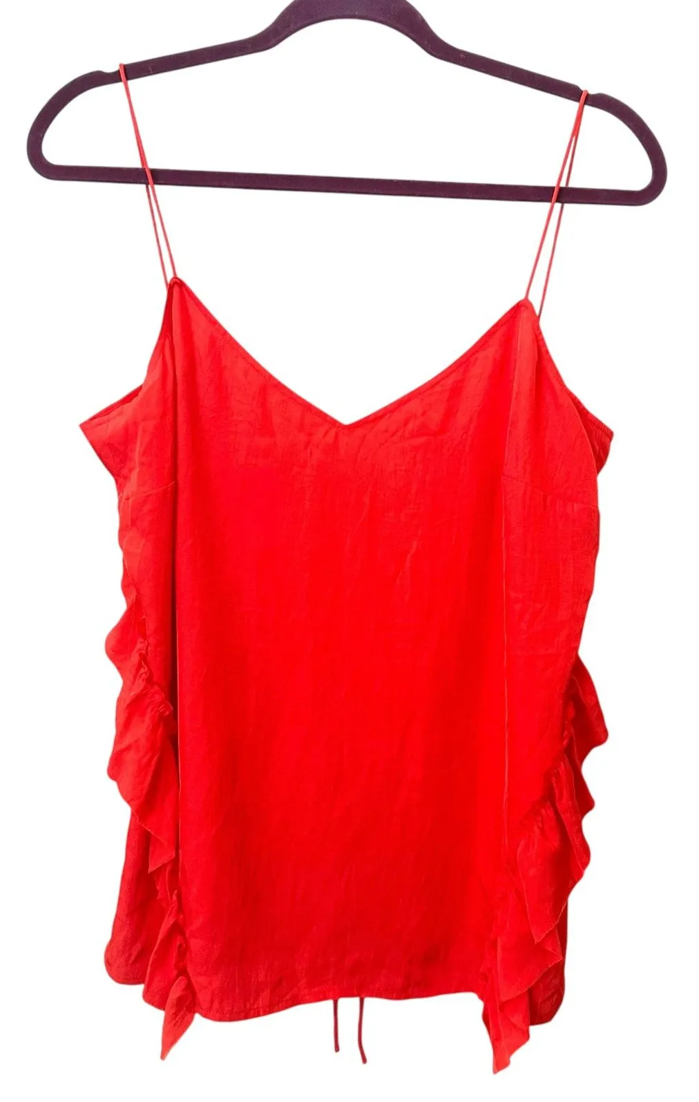 GREY JASON WU Ruffle Detail Sleeveless Blouse NWOT Sz 4 *NO TAGS* Dark coral ruffled blouse Ruffled throughout Spaghetti straps Adjustable tie on back Loose, relaxed fit NEW WITHOUT TAGS - only flaws are there are no material or brand tags Size 4 20.5" pit to pit, 20" long