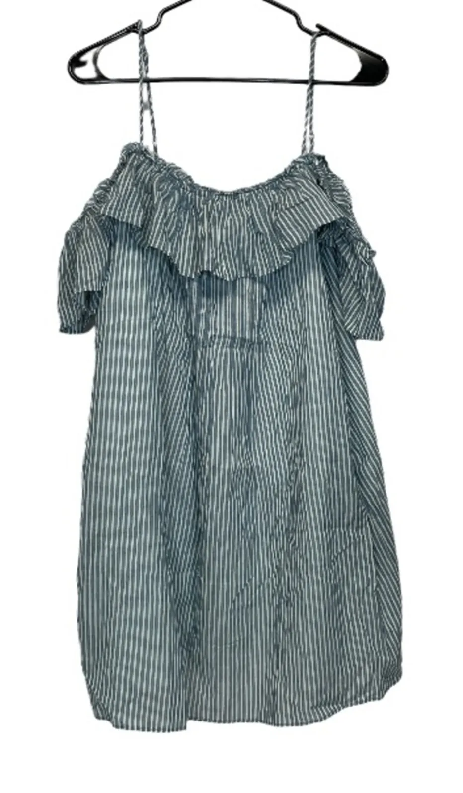 Greylin Natalia Off The Shoulder Blue & White Striped Mini Dress Sleeveless Off the shoulder Striped Lined 100% cotton self Size: L Measurements are provided in pictures Condition: NWT