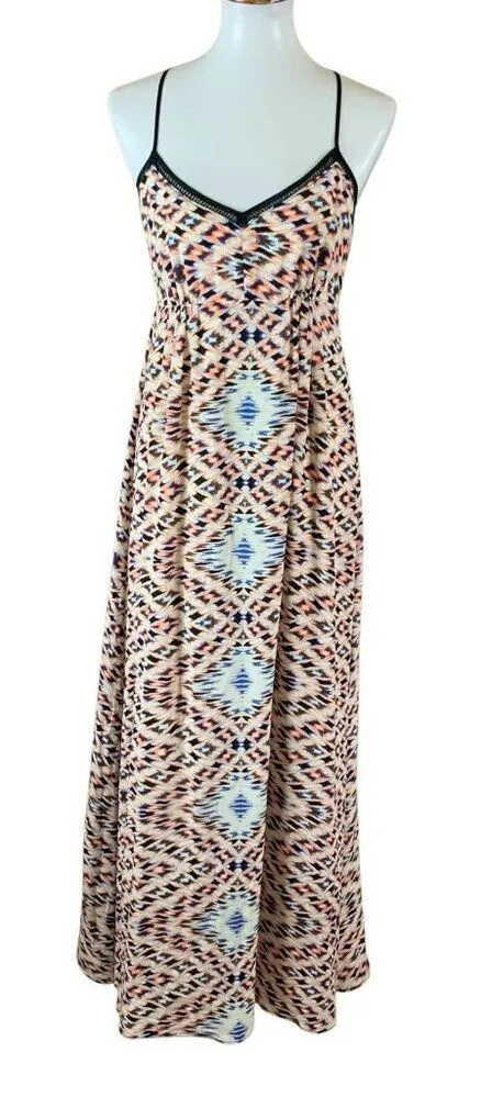 Greylin Silk Maxi Dress‎ Sleeveless Aztec Print Boho Festival Summer Small - $45 - From Rodica