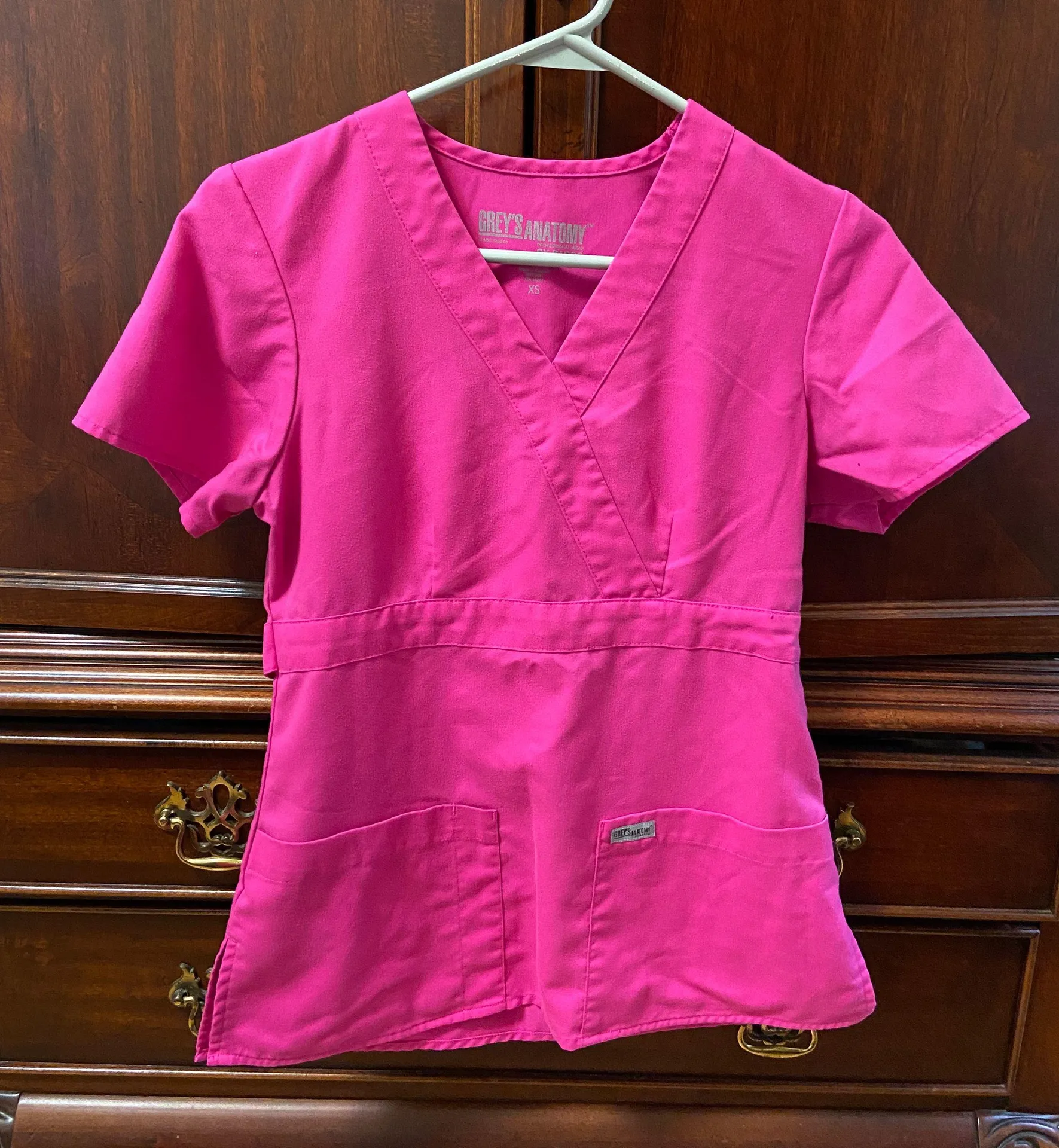 Greys Anatomy Scrub Top Size XS Hot Pink in color Smoke free home Fast shipping Discounts on bun... Show more