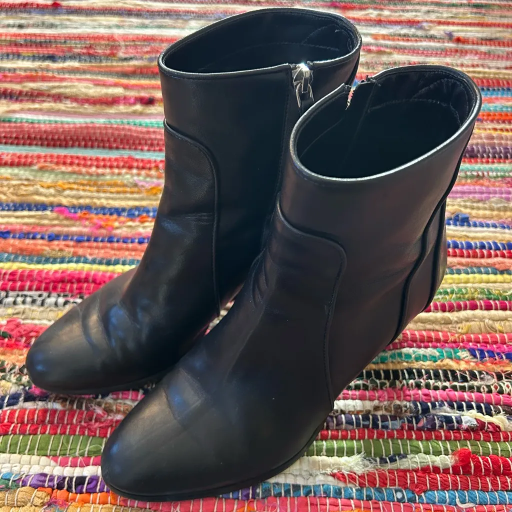 Grigiarancio ankle boots are stylish, often Italian-made leather or suede booties known for quality materials like soft leather, featuring designs from classic pointed-toe heels to more casual zip-up or combat styles with features like block heels or fur cuffs, available widely on resale sites as new or pre-owned fashion footwear. Gifts for her, holiday office party. Gala, dinner date. MADE IN ITALY Size: EU 38 An EU size 38 generally converts to a US Women's size 7.5 Color: Black Material: Leather Condition: Excellent Grigiarancio is an Italian brand, likely from Florence, specializing in handmade luxury women's footwear, particularly boots, using high-quality materials like Italian leather and real fur, known for unique designs often featuring animal prints like leopard. A source for premium, distinct Italian-made shoes for women.