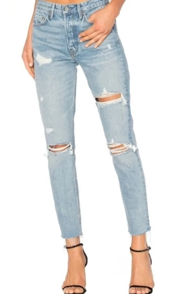 You've got a little more love to give... try these on for size. GRLFRND's Karolina High-Rise Skinny Jean is made for everyday wear with a full cotton fabrication and rips in all the right places. 100% cotton. Button fly. Front and back pockets. Light fading and whiskering with ripped detail. Frayed raw cut hem . Made in US Revolve Style No. GRLR-WJ77 Manufacturer Style No. GF4004131 S17 Preowned Condition Size: 24 Waist: 13" Flat Lay Rise: 8.5" Length: 37" Inseam: 27" Measurements are approximate Please ask any questions prior to purchasing Stock photos for styling purposes only 1 pound 1oz L- 400 GRLFRND Karolina jeans GRLFRND high-rise skinny jeans Size 24 skinny jeans A Little More Love collection GRLFRND denim Made in USA jeans Women’s high-rise jeans Style & design keywords: Distressed skinny jeans Ripped detail denim Frayed raw hem Light fading and whiskering Button fly jeans Casual everyday jeans Trendy skinny jeans Occasion & use keywords: Street style Casual wear Weekend outfit Concert or festival jeans Day-to-night denim Effortless style Material & comfort keywords: 100% cotton Comfortable denim Breathable fabric Durable high-quality jeans