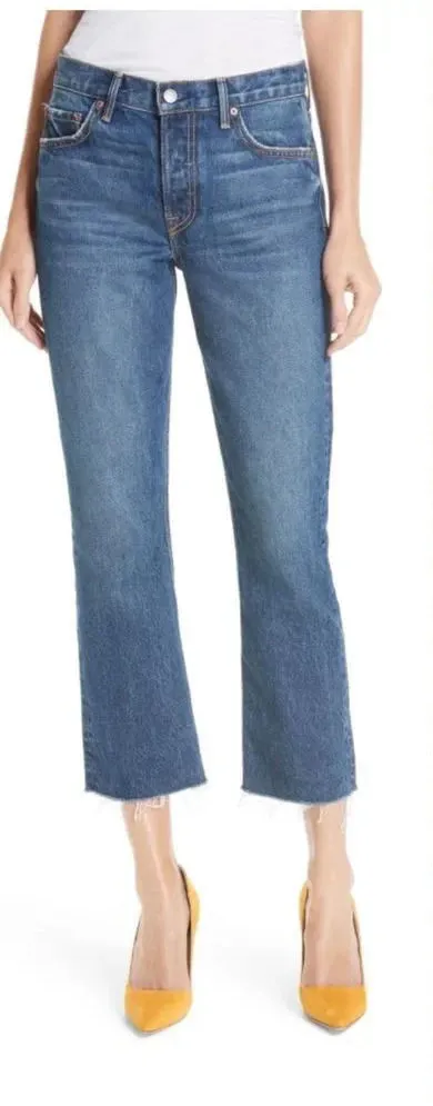 Brand new with tags GRLFRND Tatum Crop Flare Jeans in Only Lies Wash. Of-the-moment cropped flares with freshly shorn hems on the verge of fraying offer a vintage aesthetic. Zip fly with button closure Five-pocket style 100% cotton Waist is approx 14" Front rise is approx 10" Inseam is approx 25"