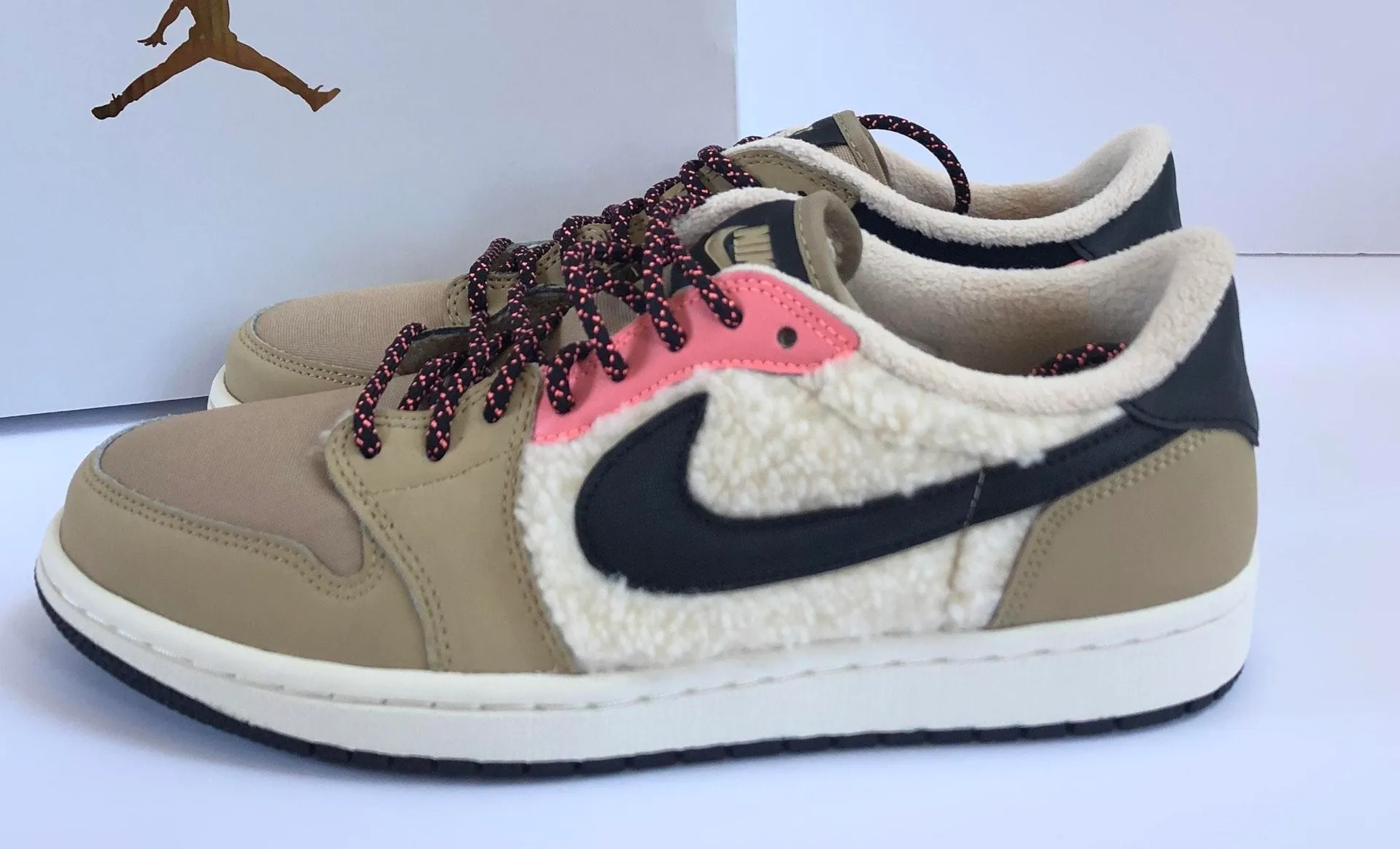 Brand new in box Beige, black and pink Sherpa sides The cutest Jordan’s!!