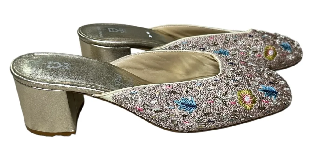 Fizzy Goblet x Payal Singhal Embellished Silver Block Heels Myles New Size 40 euro/ US 9.5 Step out in style with these stunning, brand new (NWT) heels from the highly sought-after Payal Singhal x Fizzy Goblet collaboration. These exquisite silver block heels blend old-world charm with contemporary aesthetics, perfect for adding a touch of glamour to any occasion. Intricate Hand Embellishments: Adorned with a vibrant and detailed array of beads and colorful floral motifs, showcasing the signature craftsmanship of the collaboration. See pic for a gorgeous array of beadwork & color. Designed for both style and comfort, featuring a sturdy block heel that makes them perfect for events, weddings, or a chic evening out but still easy to walk in! The shimmering silver base and colorful embellishments make these heels a versatile addition to your wardrobe, pairing beautifully with both traditional Indian wear and modern outfits. Crafted with attention to detail and quality materials, ensuring lasting wear and comfort with features like double cushioning. Make these unique and handcrafted beauties yours today and add a touch of artisanal luxury to your collection!