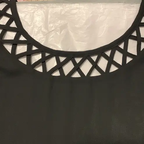 Sleeveless Black Chiffon. Not Lined. Lattice Neckline. There are belt loops but no belt.