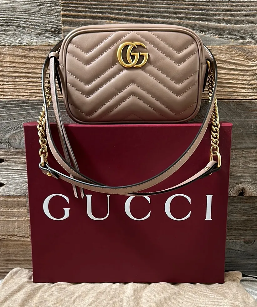Gucci GG Marmont Mini Shoulder Bag in Dusty Rose. This bag is in excellent condition with no signs... Show more
