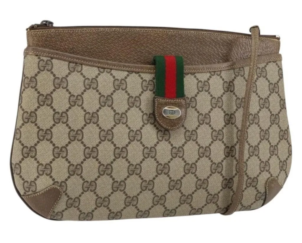 Material: PVC Leather/GG Canvas Color: Beige / Gold / Red Height: 7.9 Width: 12.2 Condition:Pre-Owne... Show more