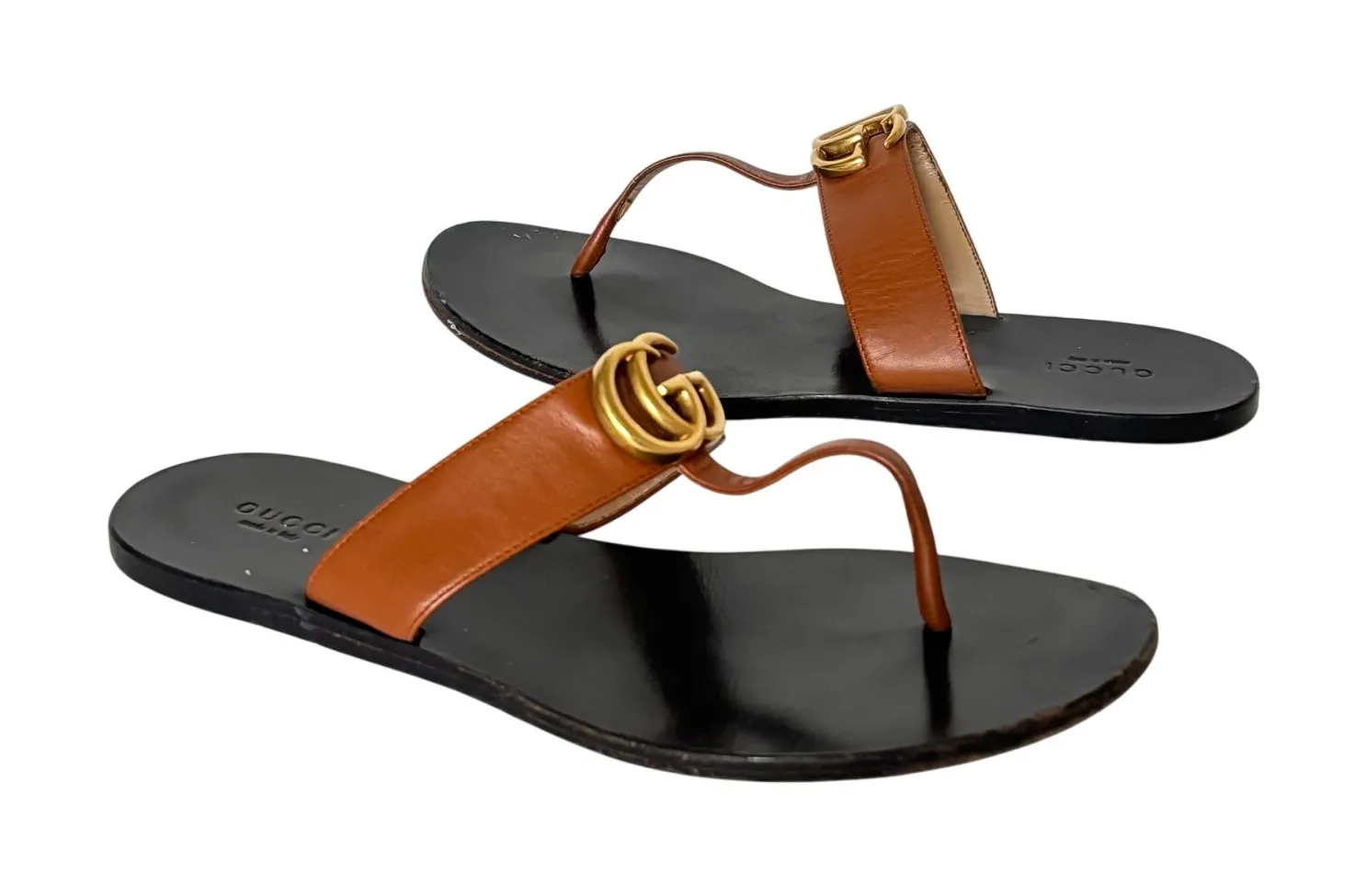 Gucci Marmont GG Thong Sandals Size: EU 39 US 9 Color: Black, Gold, Brown Features: - Slip on flip... Show more