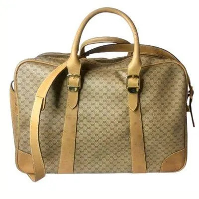 GUCCI Micro GG Rolled Top Handle Leather Shoulder Strap Coated Canvas Vintage Carry-On Travel Bag Su... Show more