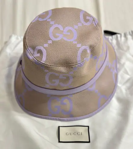NWT Authentic GUCCI Lavender Denim Monograms GG Leather Brim Jumbo Hat In Size M 100% authentic! Con... Show more