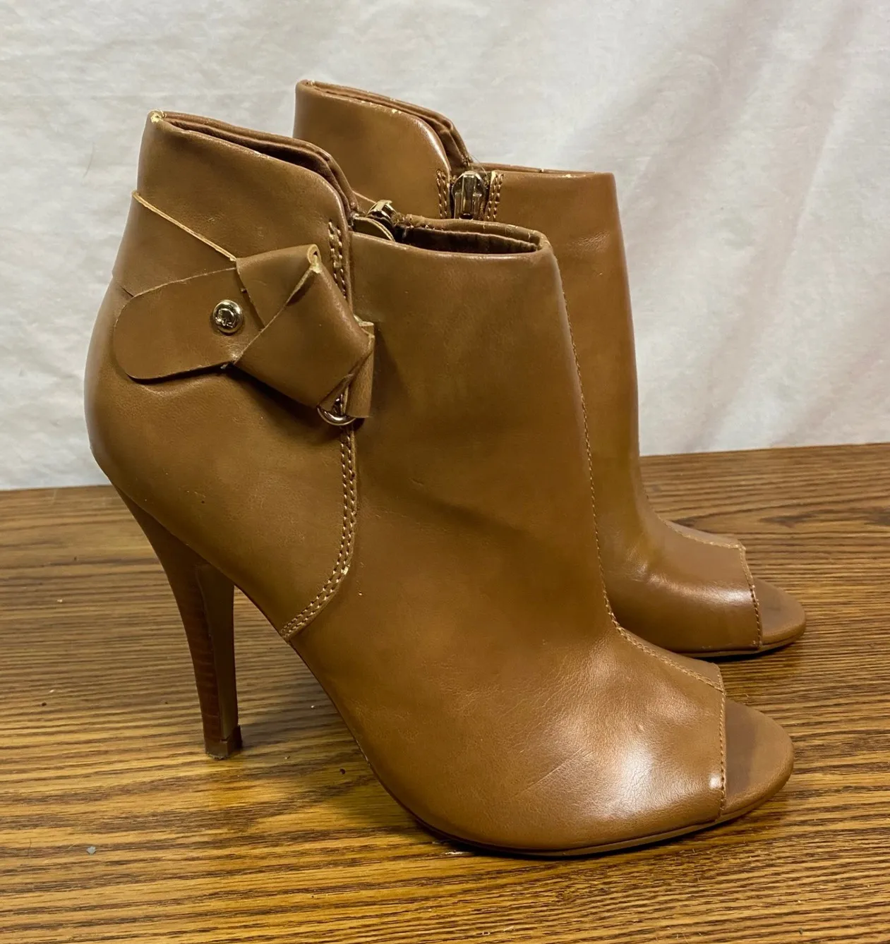 Step into sophistication with these chic Guess booties. A peep-toe design adds a flirty touch, while... Show more