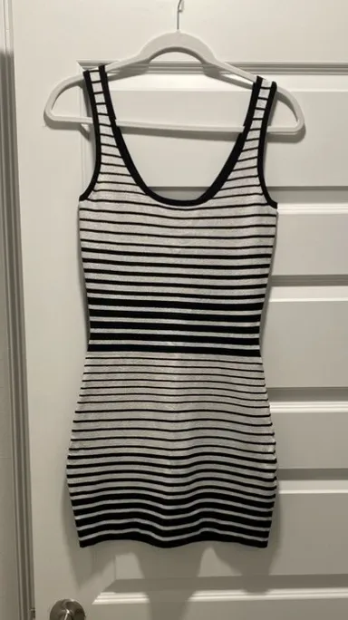 Worn once! STRETCH Marciano Black and White Dress Bodycon Mini Size L - $17 - From Natasha