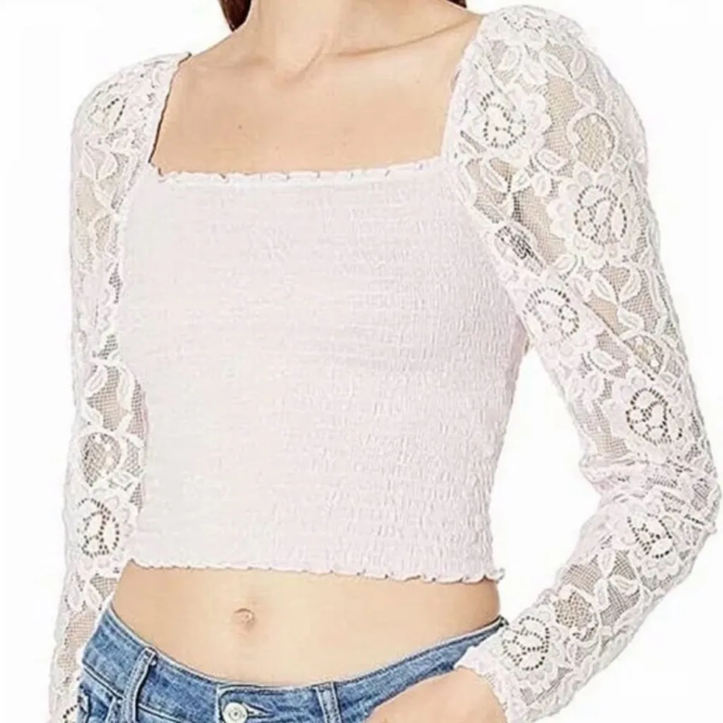 Guess The Nila Smocked Lace Long sleeve Crop Top in Light Pink Size: medium Tags: Lace, Floral,... Show more