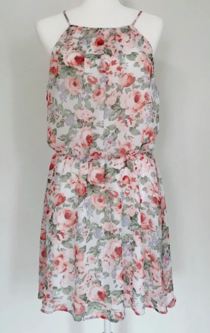 Gorgeous Halter Neck Floral Print Maxi Dress Button key hole back Good condition