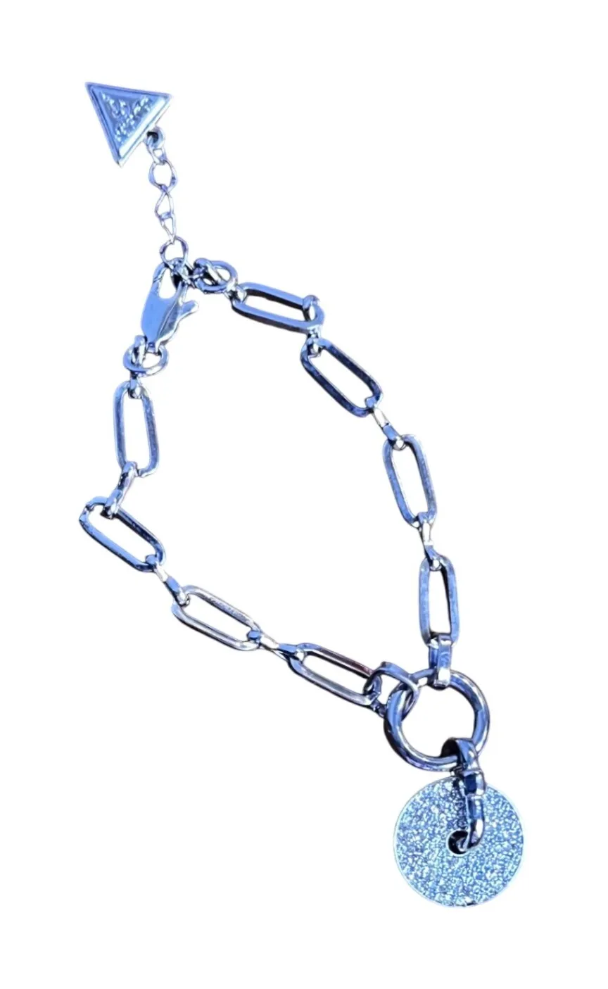 Statement bracelet delivers a touch of edgy glamour to any ensemble. This silver-tone chain bracelet... Show more