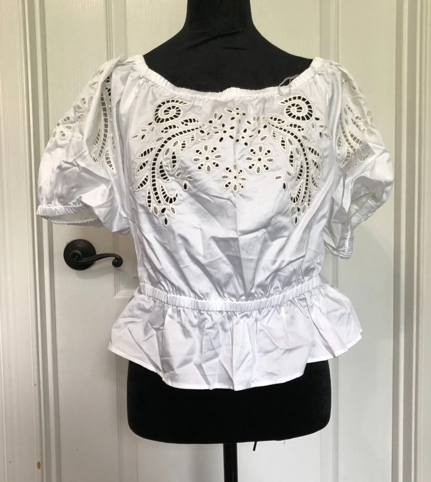 Guess Womens Blouse L White Lazo Eyelet Off Off the shoulder Peplum Top NWT Condition: NWT Brand:... Show more