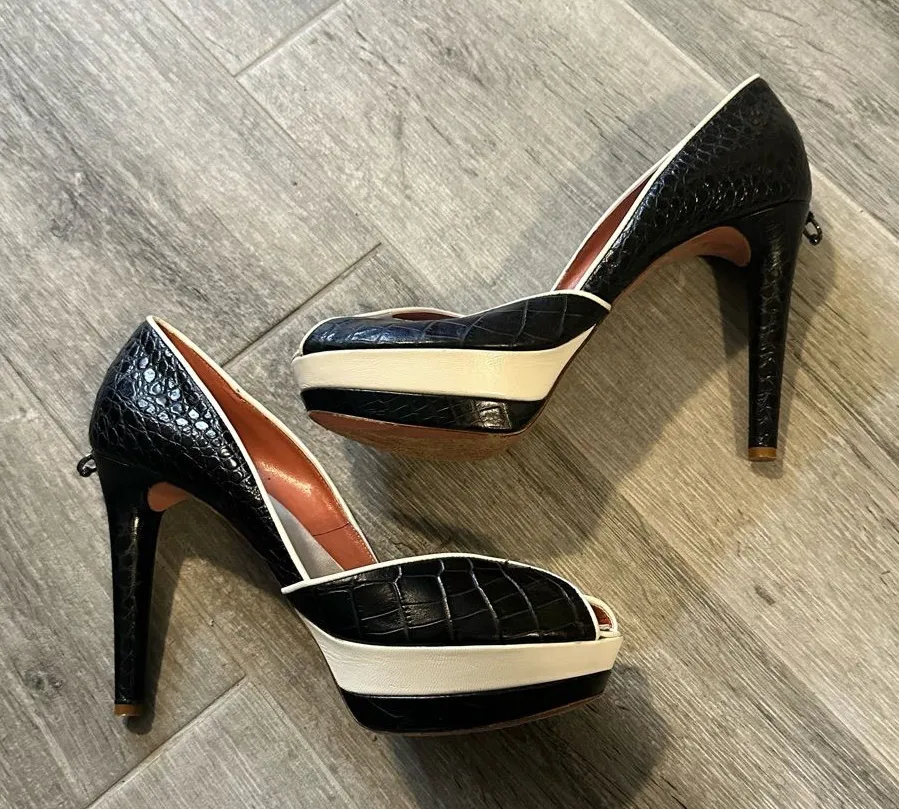 Guillaume Hinfray Made In Italy Purple Black Pump Heels Quiet Luxury Size 38.5 - $340 - From Kristy