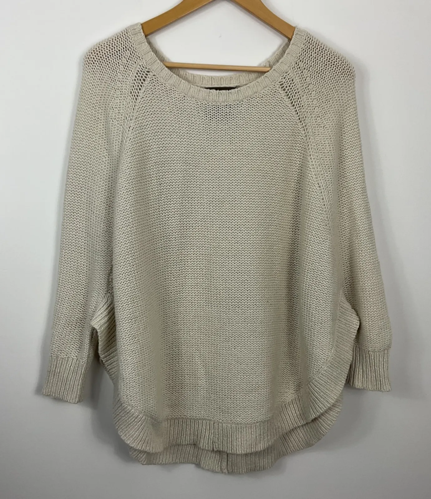 Guinevere batwing dolman knit sweater top in a versatile beige hue. This cozy top features a textured knit construction, a flattering rounded neckline, and long sleeves with ribbed cuffs. The unique dolman silhouette offers a relaxed and comfortable fit, perfect for layering or wearing on its own. Please see all photos for any flaws or conditions. J25 Measurements: • PTP: 22 in • Length: 26.5 in Style: Pullover Department: Women Material: Wool Blend, Alpaca, Wool, Nylon Neckline: Round Neck Sleeve Length: Long Sleeve Type: Sweater Features: Lightweight, Oversized, Breathable, All Seasons Pattern: Solid Sleeve Type: Raglan Sleeve Fabric Type: Knit Knit Style: Open-Knit Season: Fall, Winter, Spring Fit: Relaxed Keywords: Guinevere sweater, knitwear, wool blend, alpaca blend, oversized, dolman sleeve, textured knit, cozy, neutral, fall fashion, winter wardrobe, casual chic, luxe knit, relaxed fiT